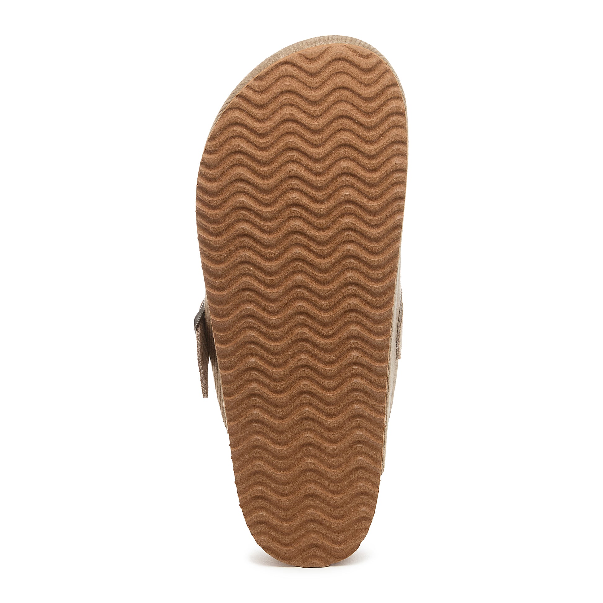 A relaxed slip-on mule crafted for comfort-first wear, the Abel Plus features a tactile taupe corduroy upper with an adjustable buckled strap and soft microfiber lining. The shoe is mounted on a flexible EVA flatform that adds gentle lift (0.8" platform / 0.6" heel) while keeping the overall weight low for all-day ease. The cushioned footbed and straightforward slide-on silhouette make this mule ideal for casual weekend looks, travel days, or comfortable at-home styling.