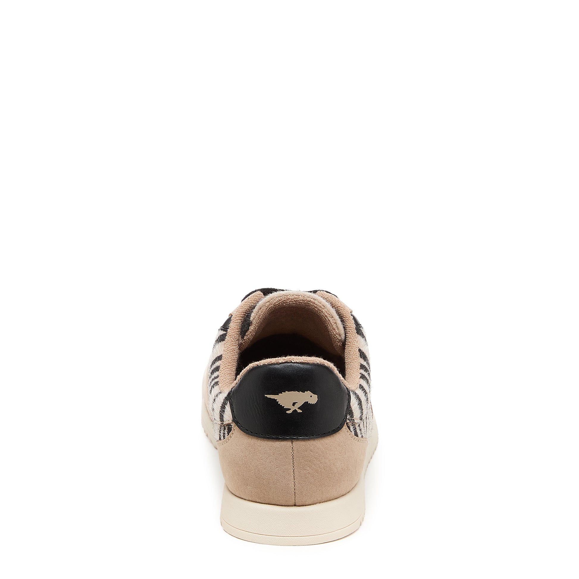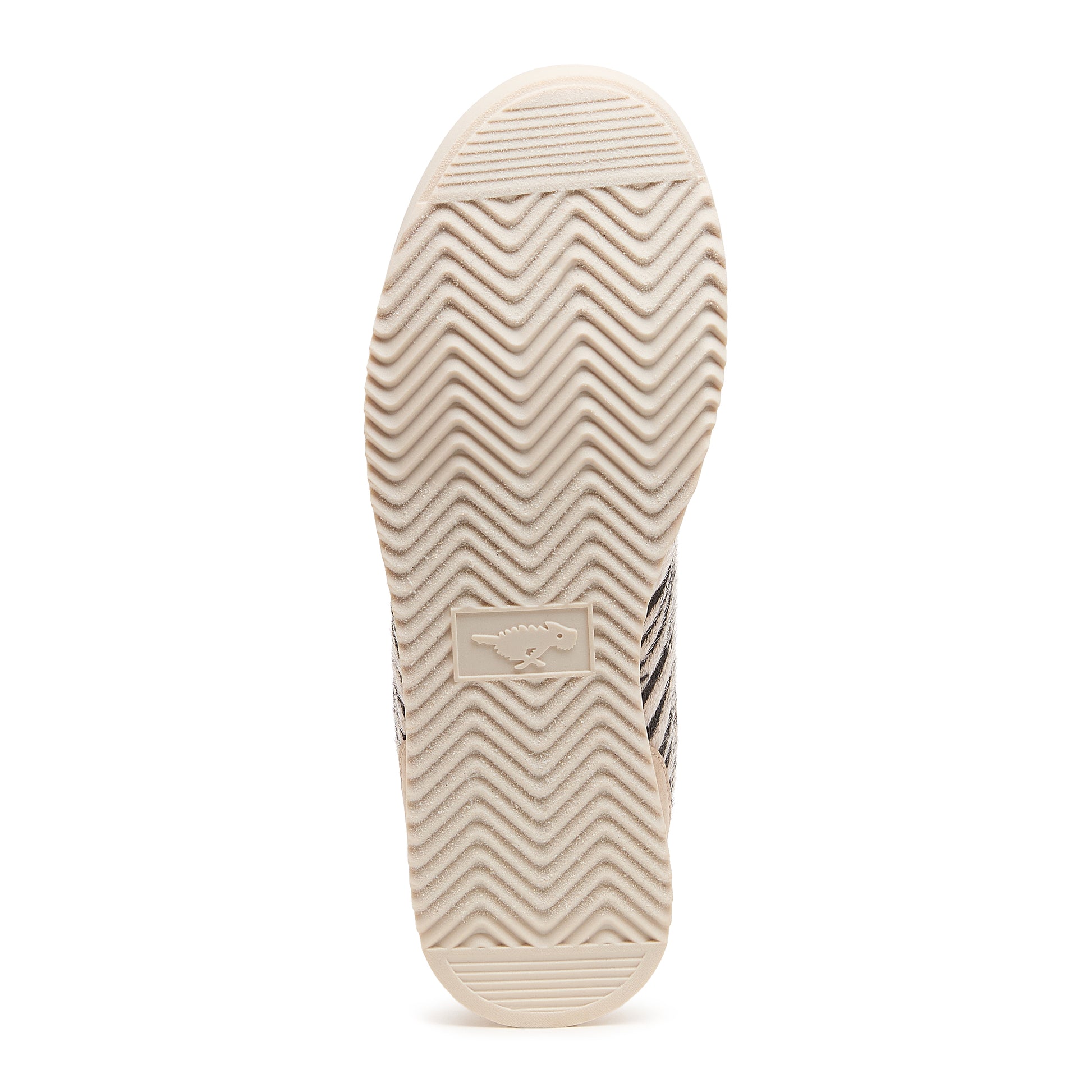 The Bolt Tan sneaker takes a classic silhouette and gives it a fierce update. The upper features a bold abstract zebra / tiger print crafted from a unique soft fiber that mimics the feel of animal fur adding rich texture and personality to your look. This statement style is balanced by a clean white rubber sole and classic lace-up front, making it surprisingly easy to pair with denim or neutral dresses. Inside, the soft jersey lining and Plush Foam Comfort Insole ensure that while the look is wild, the feel is pure comfort. Style them with relaxed denim or a simple dress and let the print do the talking while you move through the day on your terms.